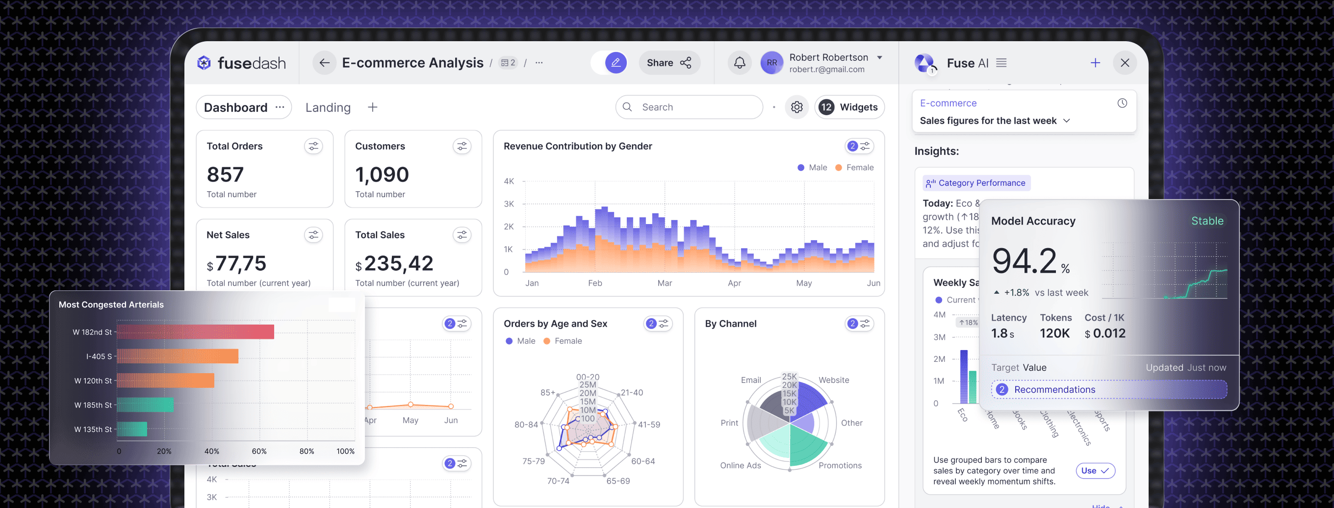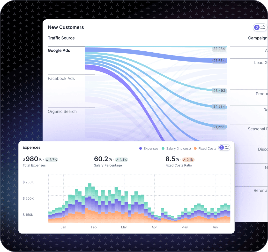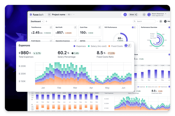 Leadership does not need more dashboards. You need one executive dashboard that makes the business state obvious, highlights what changed, and supports the next decision. Fusedash generates an executive reporting dashboard that pulls your core metrics into a single view, with trends, comparisons, and drill-downs when you need detail. Use it as a CEO dashboard for weekly leadership reviews, a leadership dashboard for cross-team alignment, and a recurring executive dashboard reporting view for monthly business reviews that stays consistent even as your team grows.
