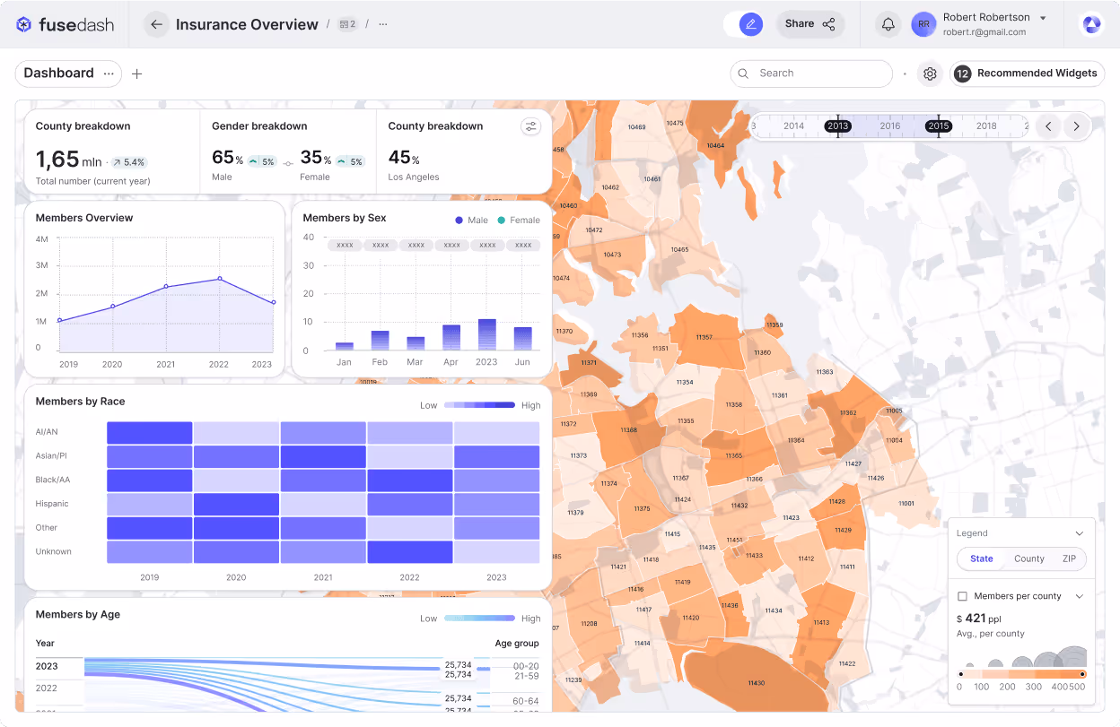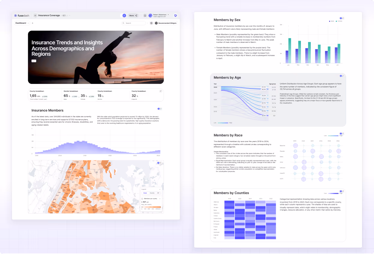 Dashboards, charts, maps, and reports in one workspace. Turn raw data into dashboards, charts, and reports your team can understand at a glance. Start from a CSV or connect an API, shape the view around your KPIs, and share results fast. Fusedash brings interactive data visualization, maps, storytelling, and data chat into one workflow, so teams spend less time rebuilding reports and more time acting on insights.